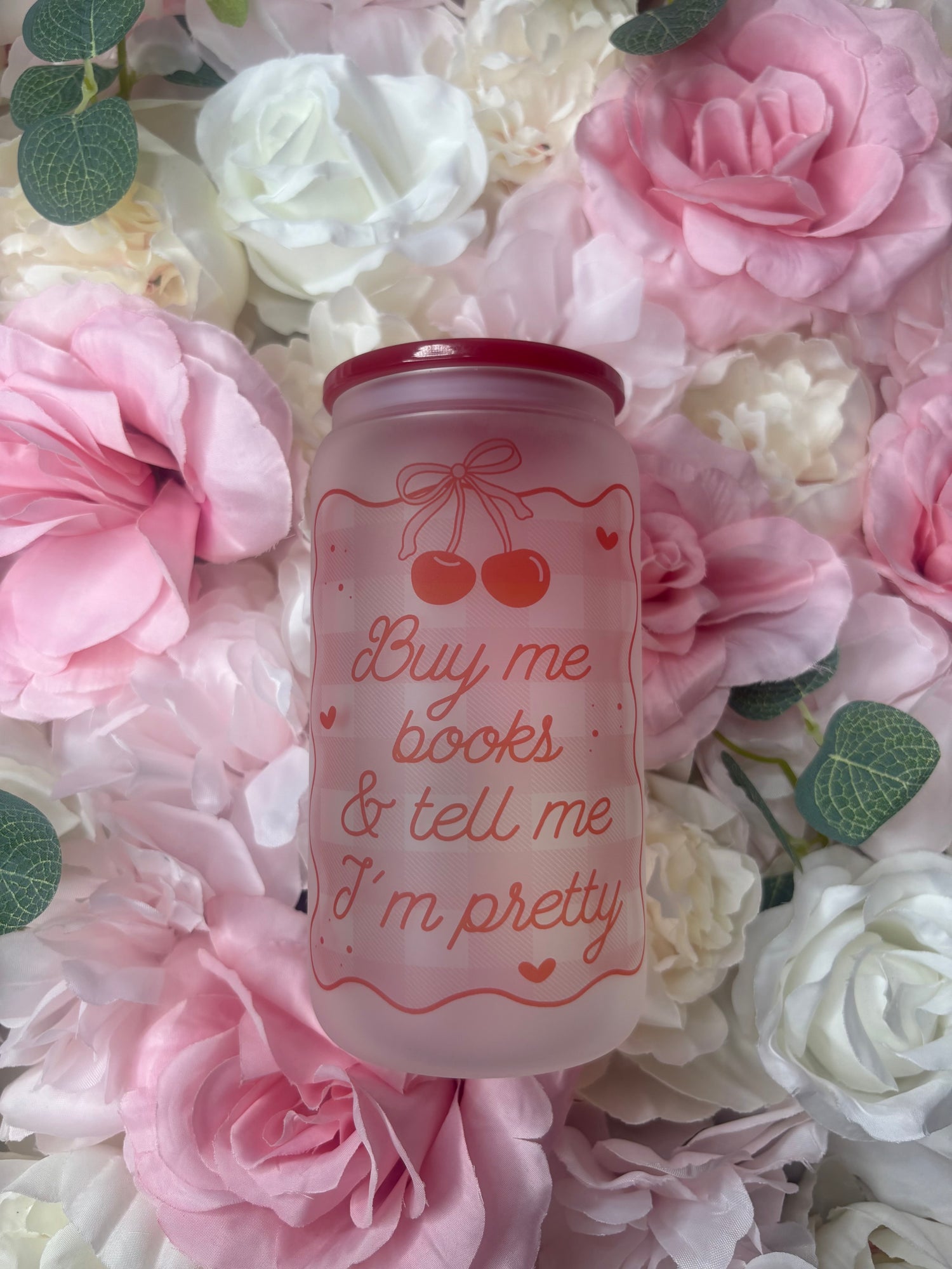 16 oz Frosted Glass Can | Buy Me Books And Tell Me I’m Pretty